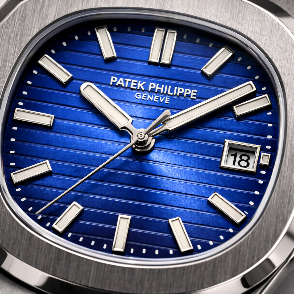 Deep blue textured dial with elegant finish